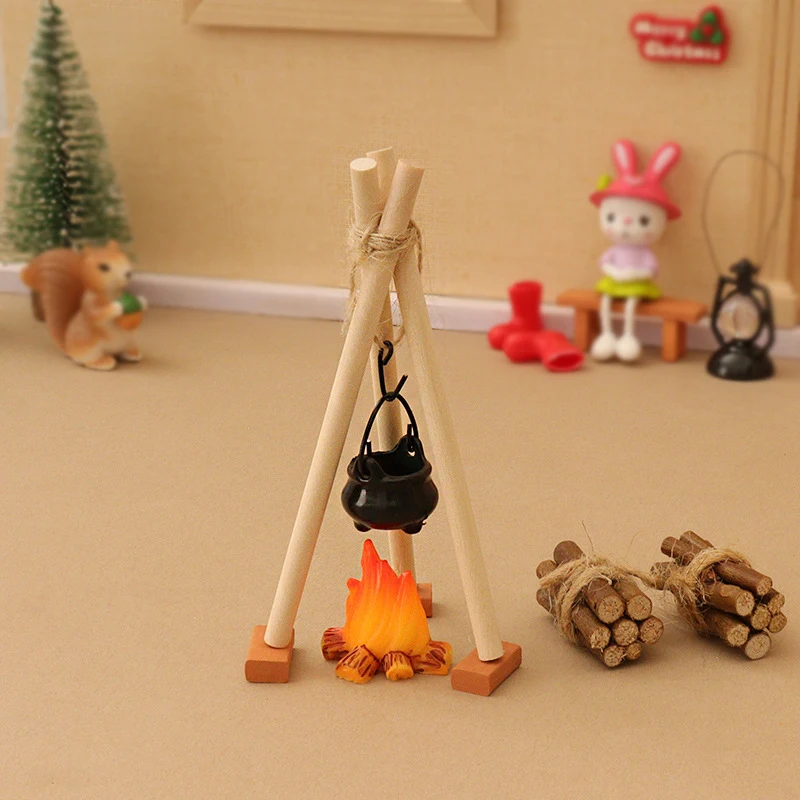 1 Set Micro Garden Landscape Decoration 1:12 Dollhouse Camping Campfire Scene Model Miniature Bonfire Ornament DIY Accessories