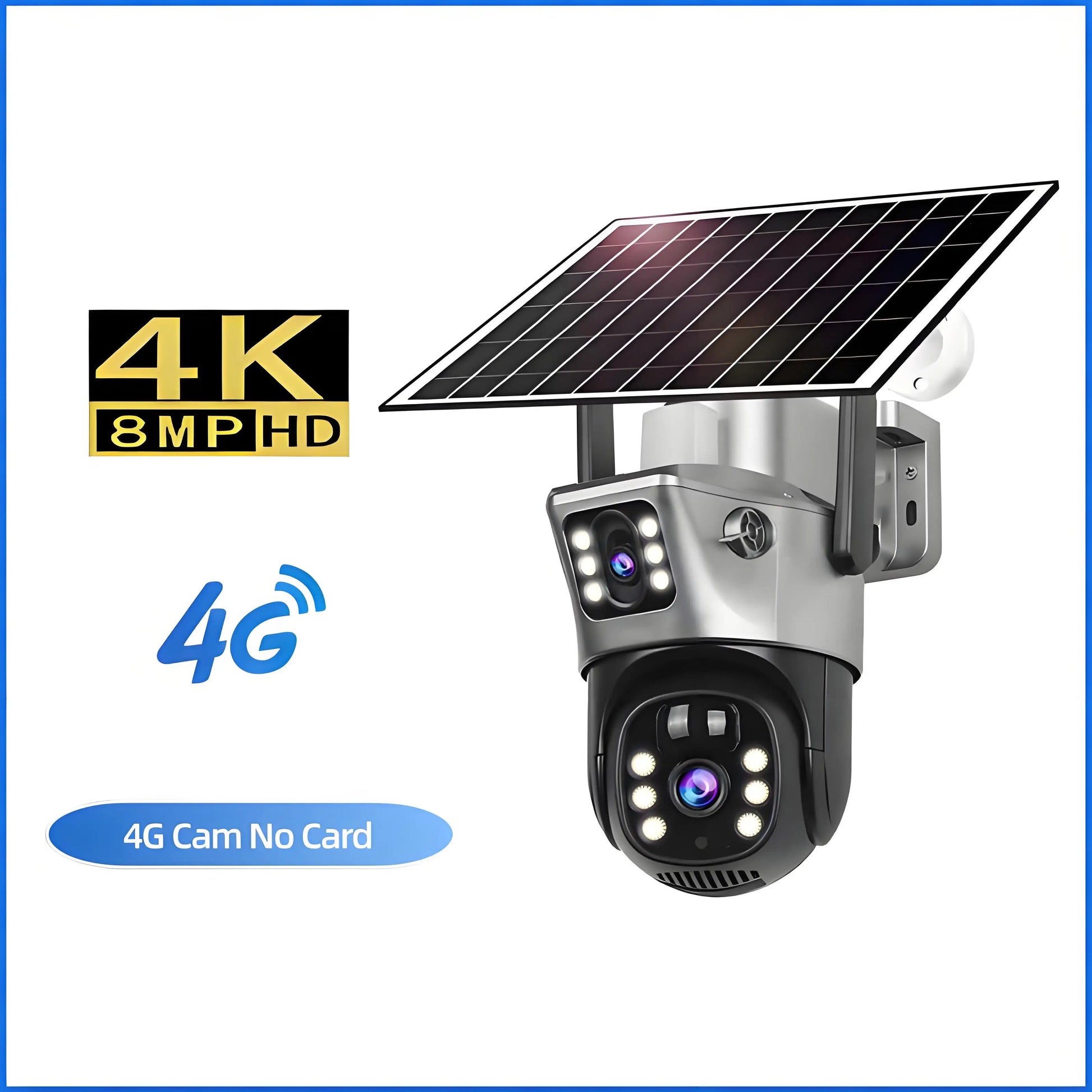 4K Wireless WiFi Solar Outdoor Camera 8MP Dual Lens 4G Sim IP Surveillance Cam PIR Night Vision Mobile Detection Security CCTV