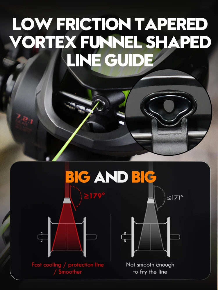 2.Compact Design-Vrigo has been designed and debugged for one year, a more compact design can extended product service life,Gear meshing and transmission are smoother and won’t make noise, Smaller gap means it won’t stuck fishing line,Overall it’s a baitcasting reel that can fulfill all your demands,and comfortable even after thousands of casts during a day of fishing.