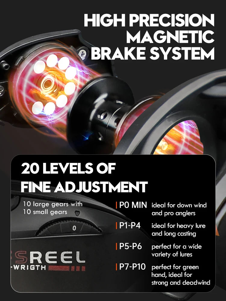 2.For the first time using, please adjust the braking force to maximum 10 lvel to prevent backlash of the fishing line Then gradually adjust the level according to the weight of the bait to achieve the farthest throwing distance