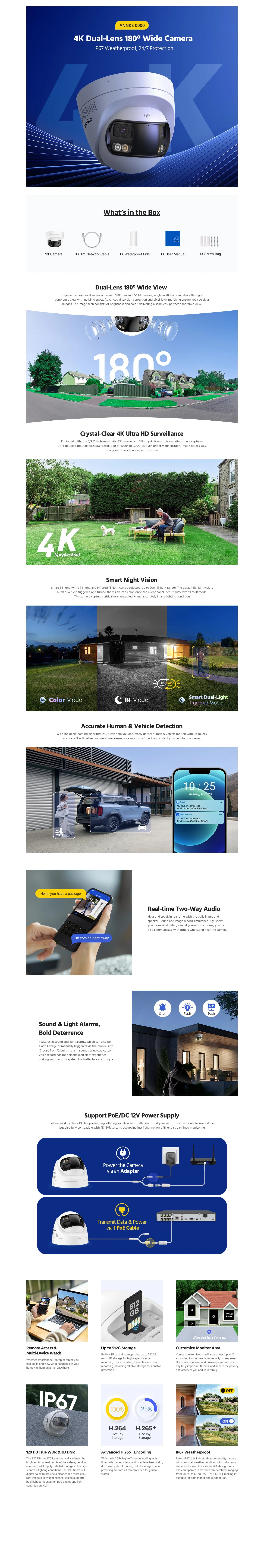 ANNKE 8MP 4K Security Camera Dual Lens 8CH NVR Ultra HD POE Ai Human Detection CCTV Video Surveillance Kit 180 Degrees Panoramic
