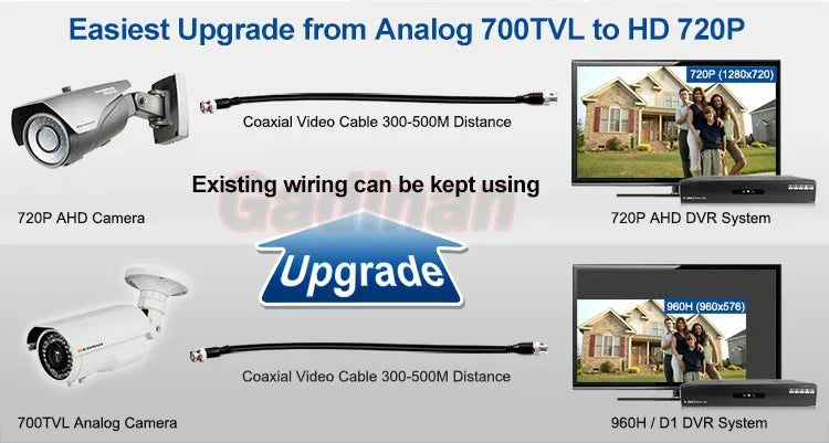 1:This camera is AHD camera, need to connect with AHD DVR,720P and 1080P need to connect with at least 1080N AHD DVR, 5MP need to connect with at least 5M-N.