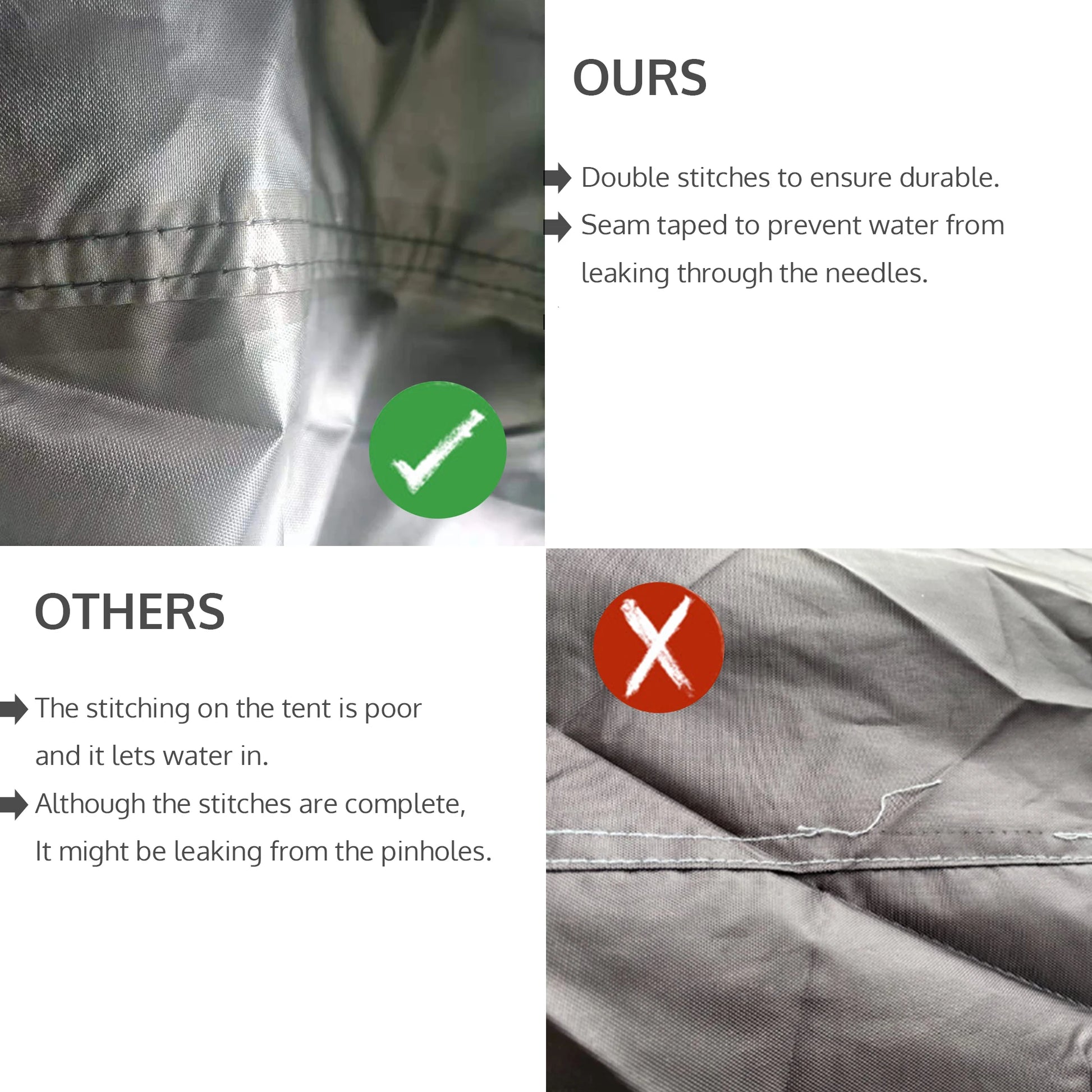Mass Production: Workers have many years of experience in making tents, and they will do well in details such as stitching, seaming, zippering, etc., so our tent waterproofness will be relatively excellent.