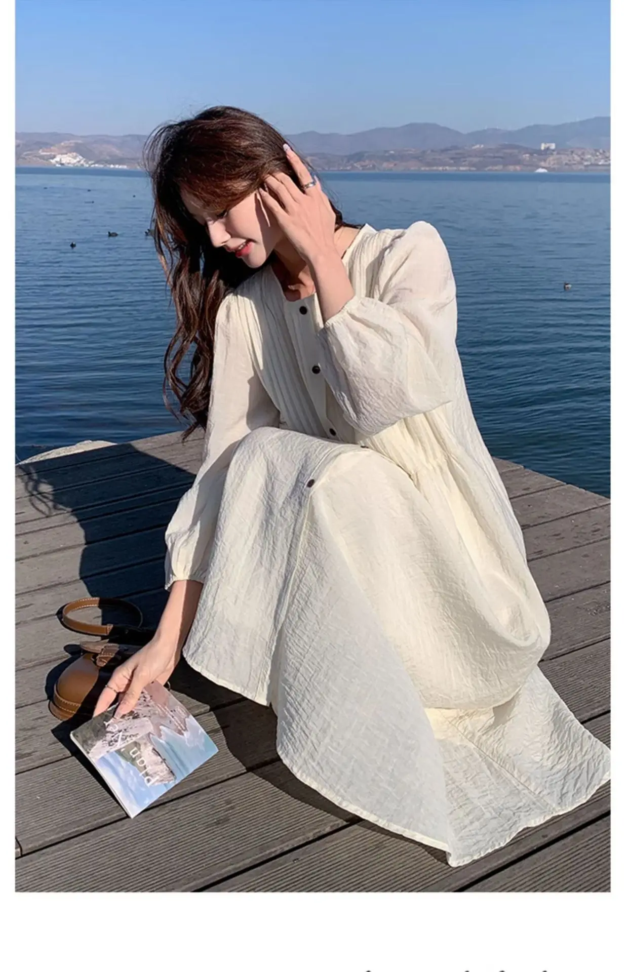 French White Dress for Women in Early Spring New Style Gentle Style Literary Retro Fairy Skirt
