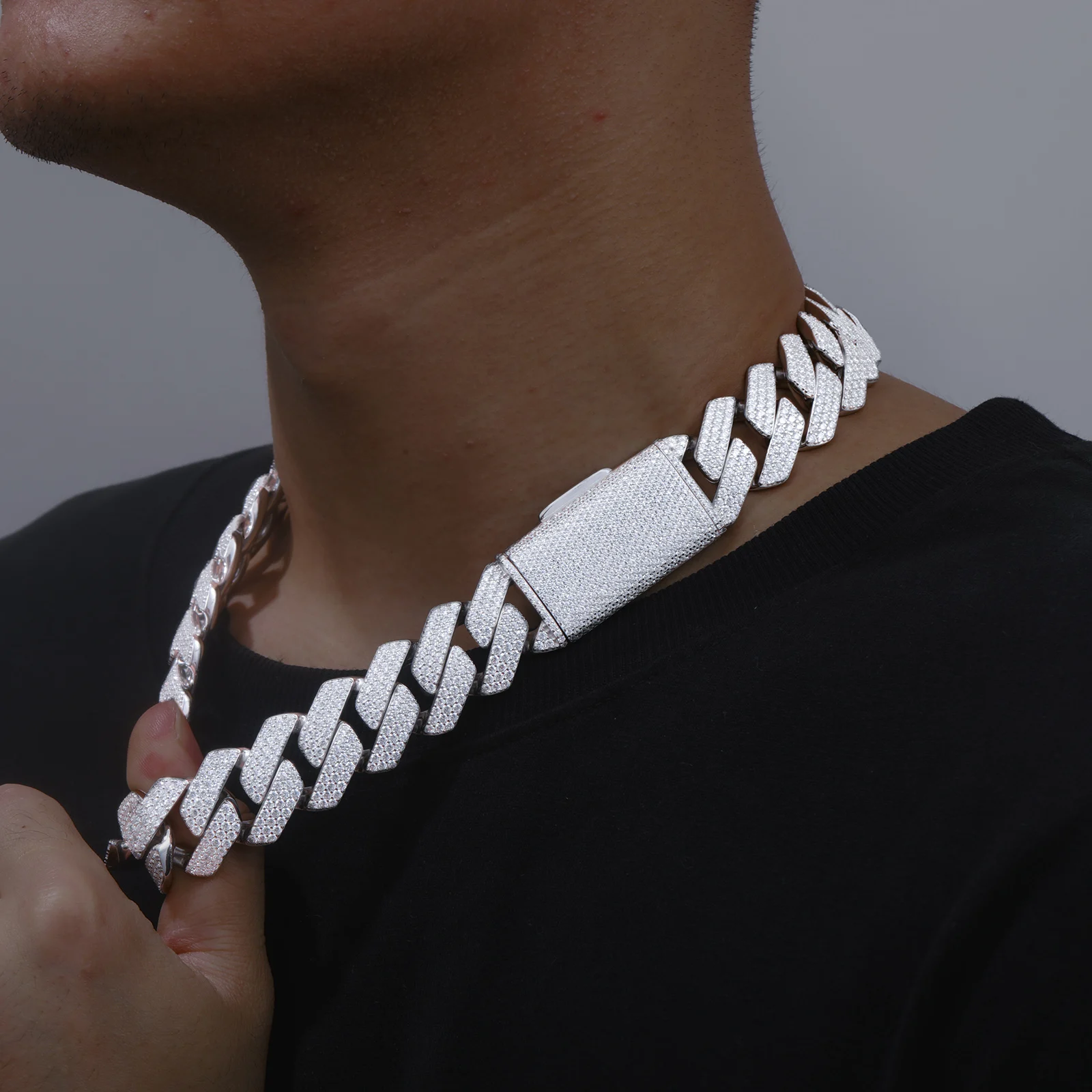 Silver-Moissanite / 20mm Width / China Mainland|Necklace-18inch200000639:883#Necklace-18inch;200000783:10#20mm Width;200001034:201673808#Silver-Moissanite;200007763:201336100