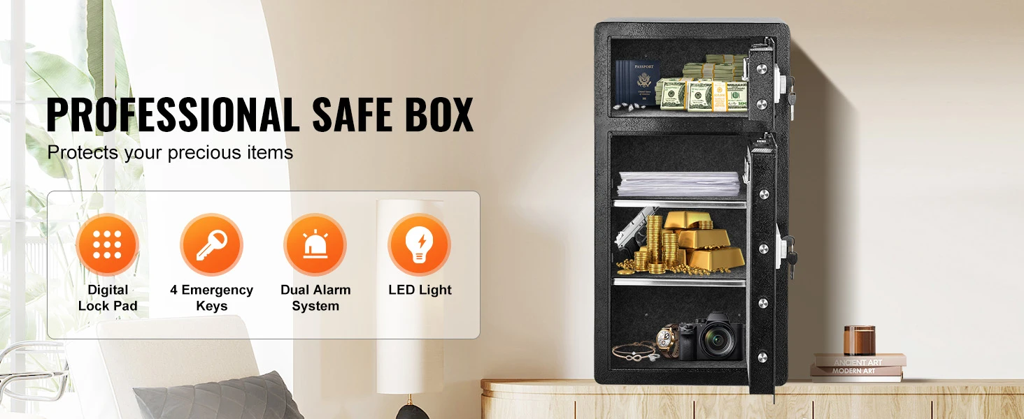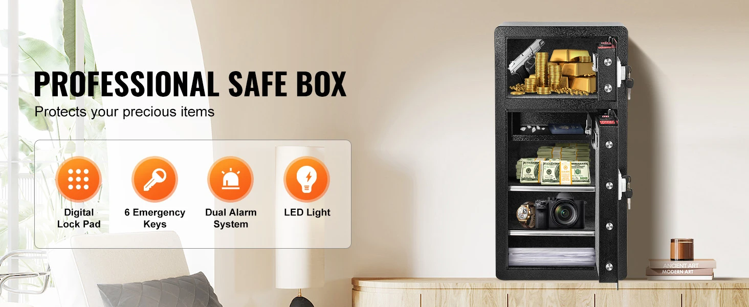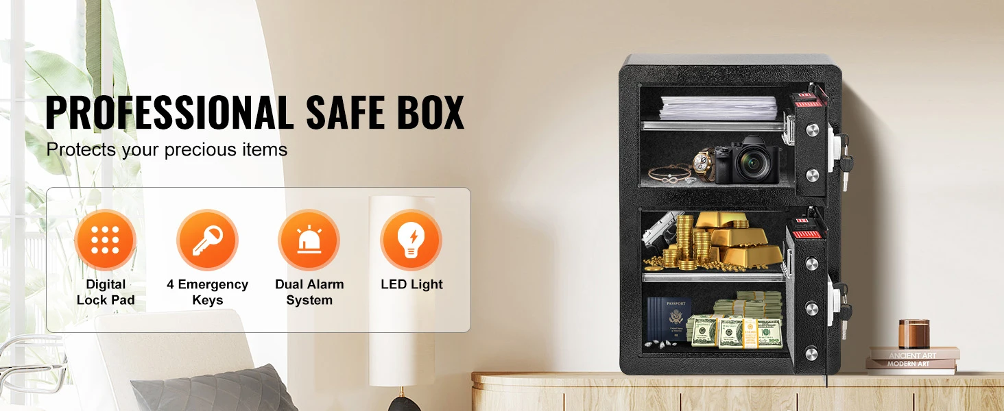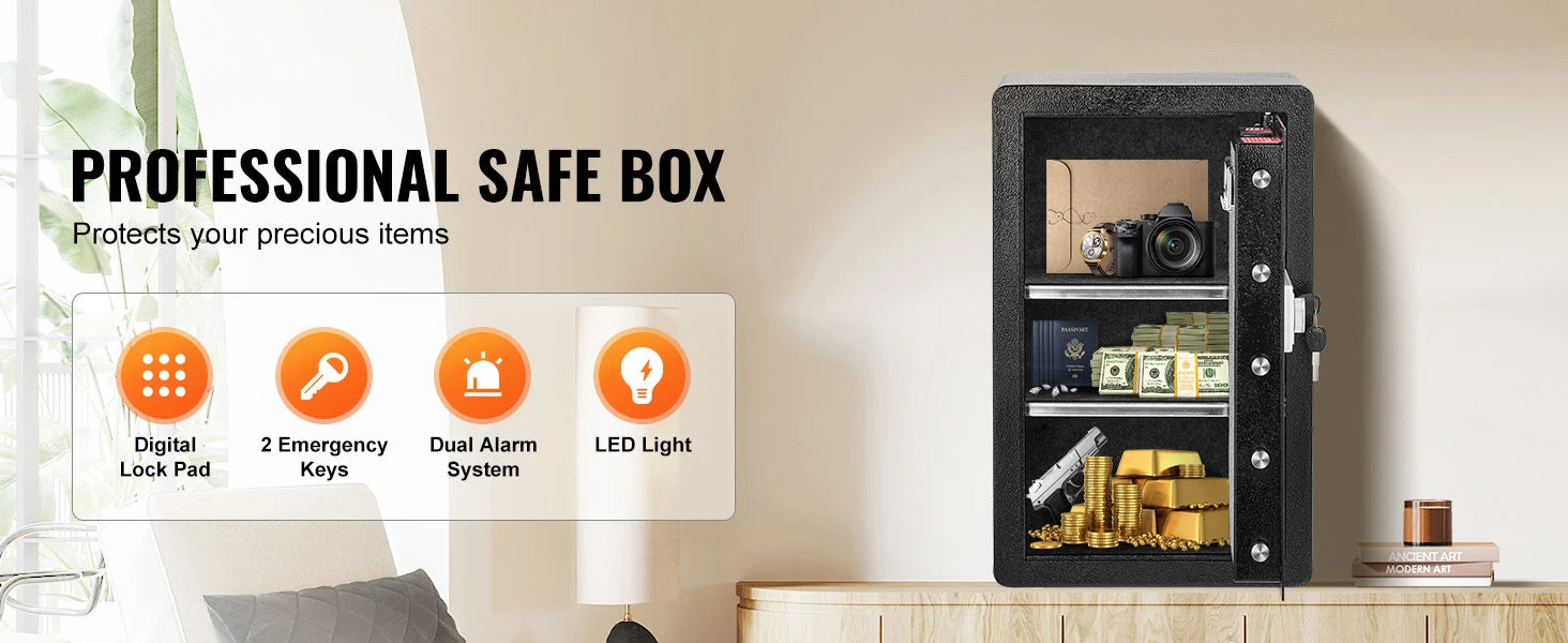 Maximum Protection: The safe box is made from high-quality alloy steel with a 3mm thick door plate to ensure maximum security. Equipped with 5 solid door bolts, it provides superior protection against any attempted break-ins.