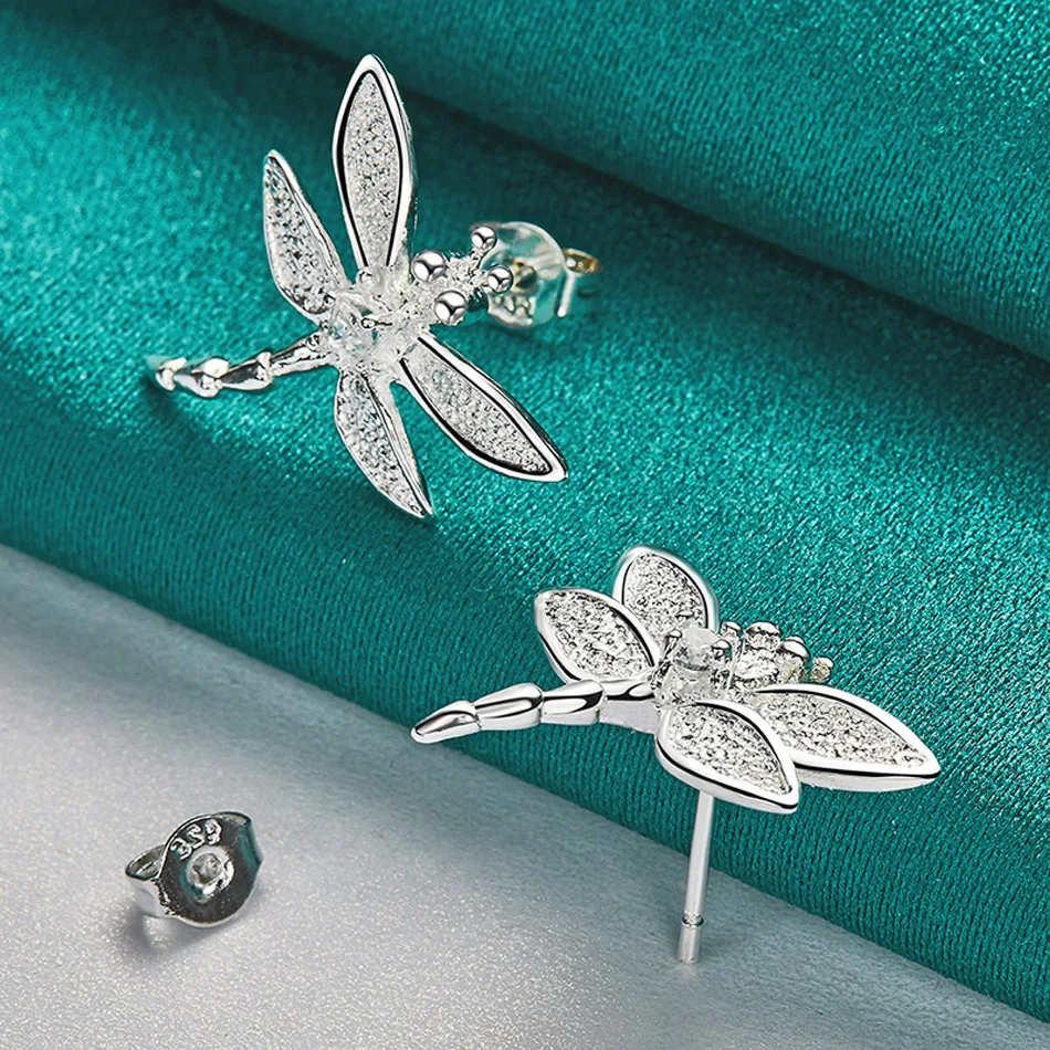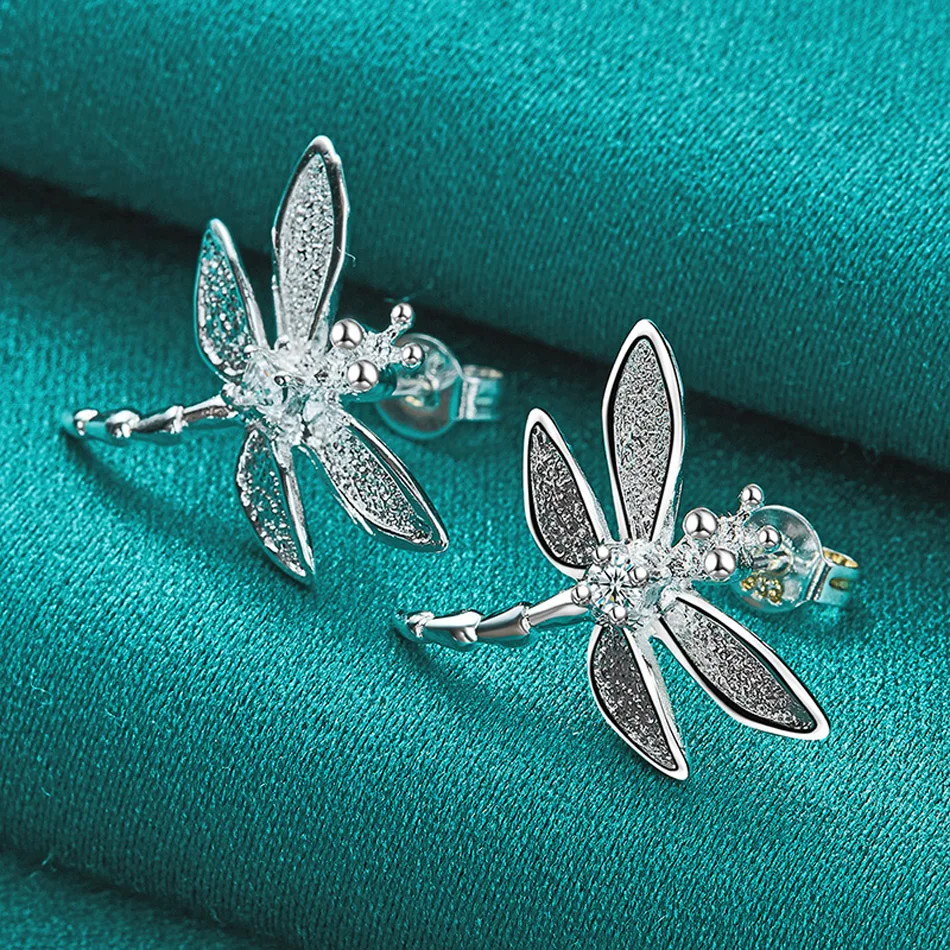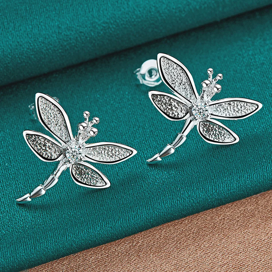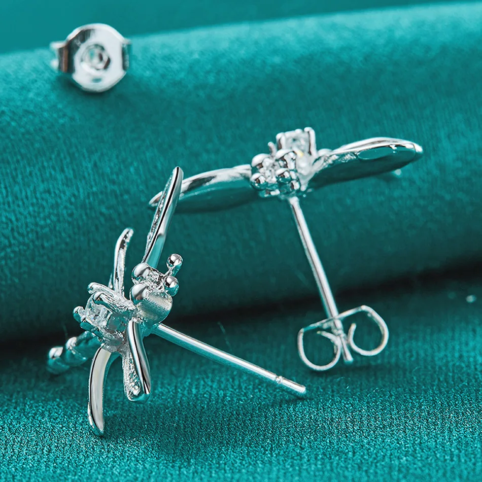 URMYLADY 925 Sterling Silver Dragonfly Zircon Stud Earrings For Women Wedding Party Fashion Jewelry