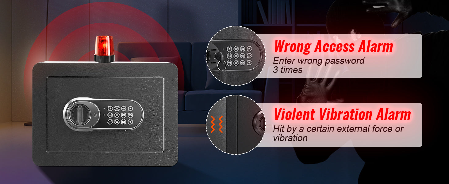 - Alarm for Extra Security: Features a dual alarm system that will sound an alert if there are three consecutive incorrect password attempts or a strong impact. This added security measure will notify you in case of any attempted theft, giving you peace of mind.