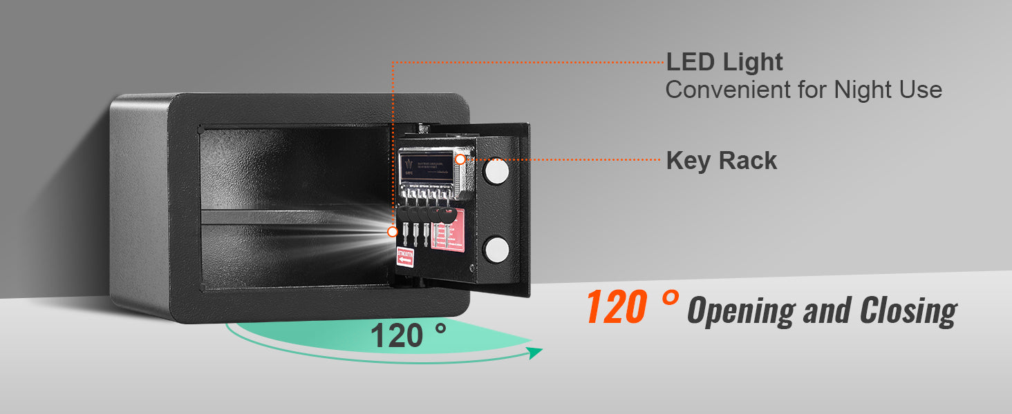 Trust our safes to protect what matters most! Our safety box has a 1.2 cubic feet storage capacity, and accessing it with a key or passwords is easy. Don't leave your valuables in danger!
